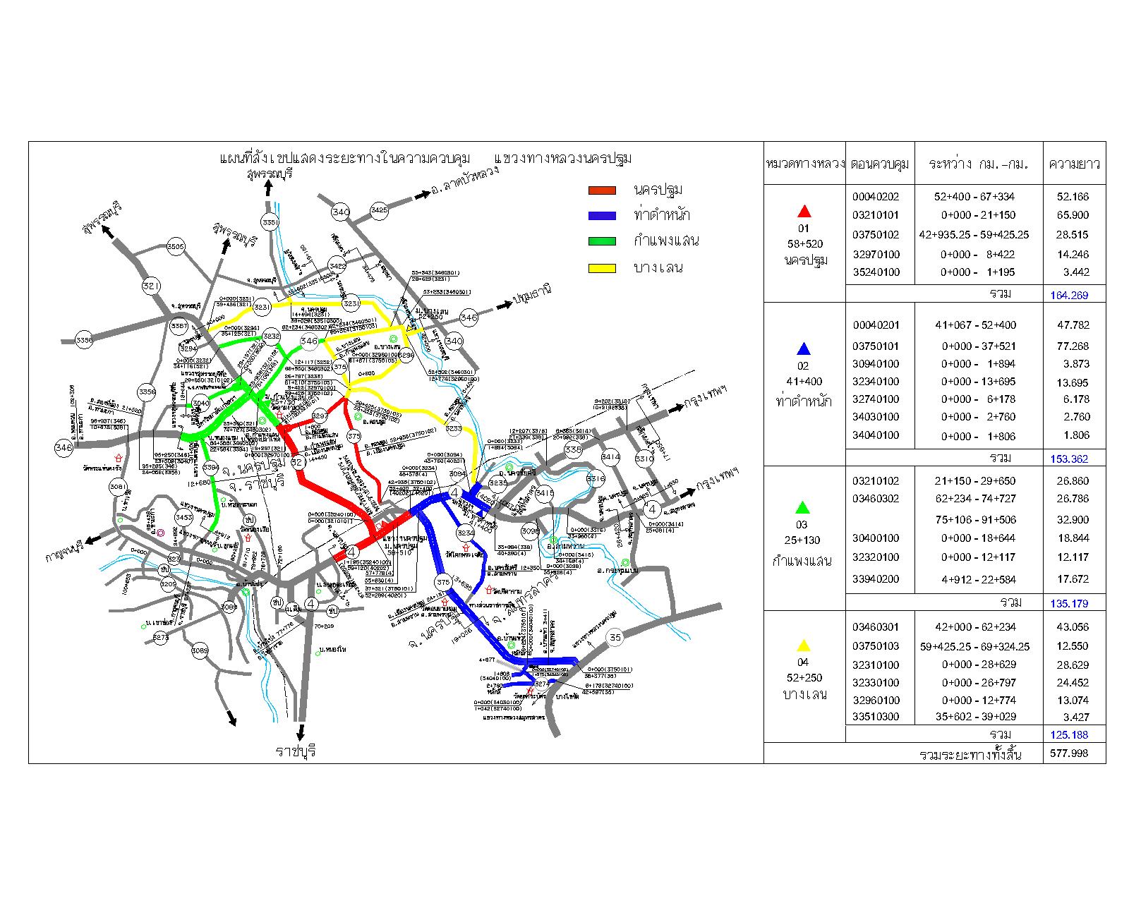แผนที่สังเขปแสดงระยะทางในความควบคุม แยกตามหมวดทางหลวง