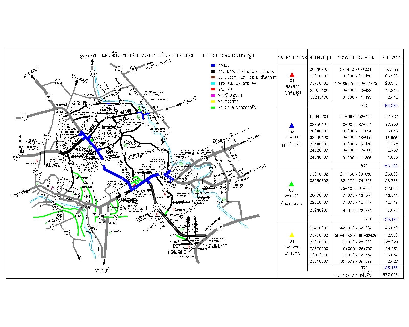 แผนที่สังเขปแสดงระยะทางในความควบคุม แยกตามผิวจราจร