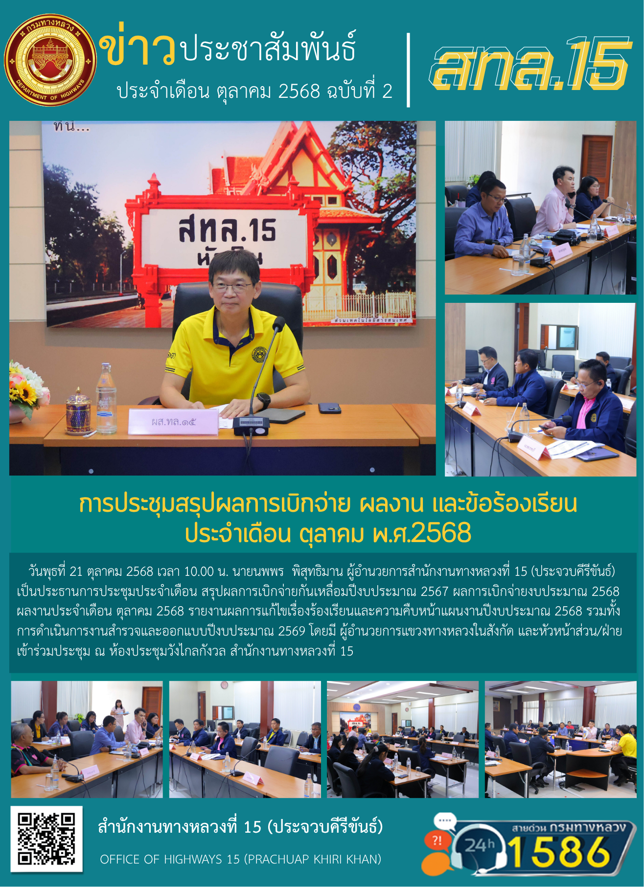 15 21/10/2568 การประชุมสรุปผลการเบิกจ่าย ผลงาน และข้อร้องเรียน ประจำเดือน ตุลาคม พ.ศ.2568