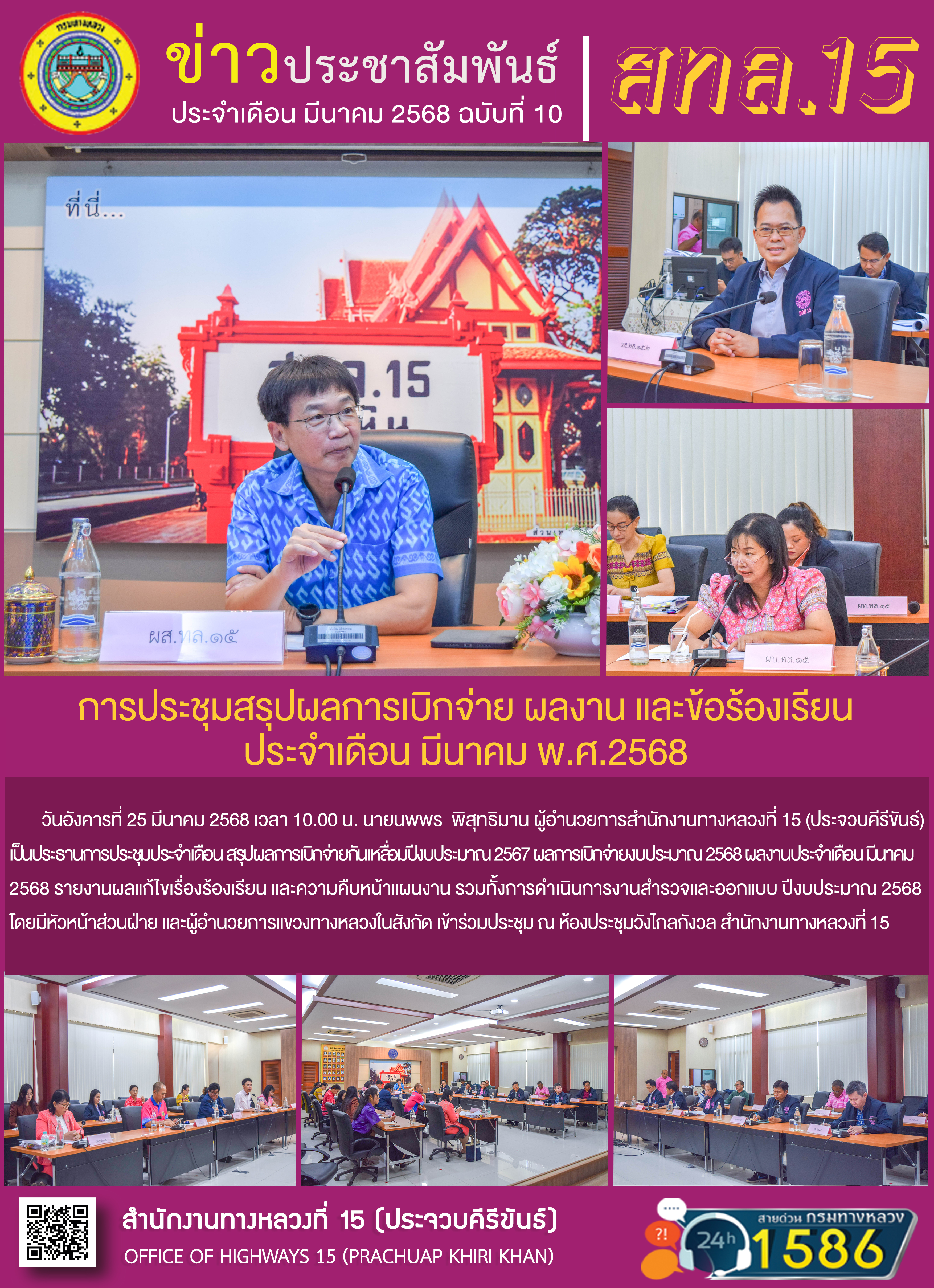 รายงานผลการดำเนินงานตามแผนปฏิบัติการส่งเสริมคุณธรรมจริยธรรมของสำนักงานทางหลวงที่ 15 ประจำปีงบประมาณ พ.ศ.2568