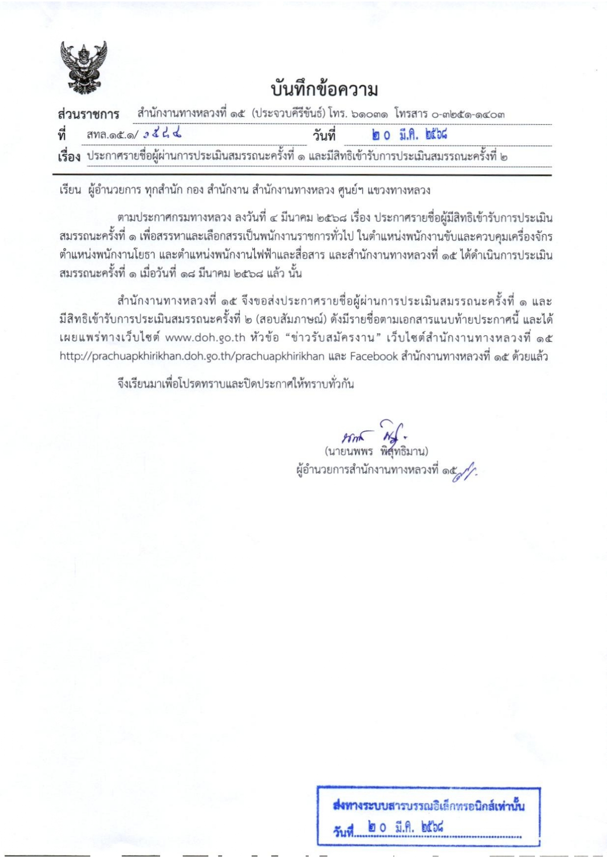 1. ตำแหน่งพนักงานขับและควบคุมเครื่องจักร สังกัดแขวงทางหลวงสมุทรสงคราม จำนวน 1 อัตรา