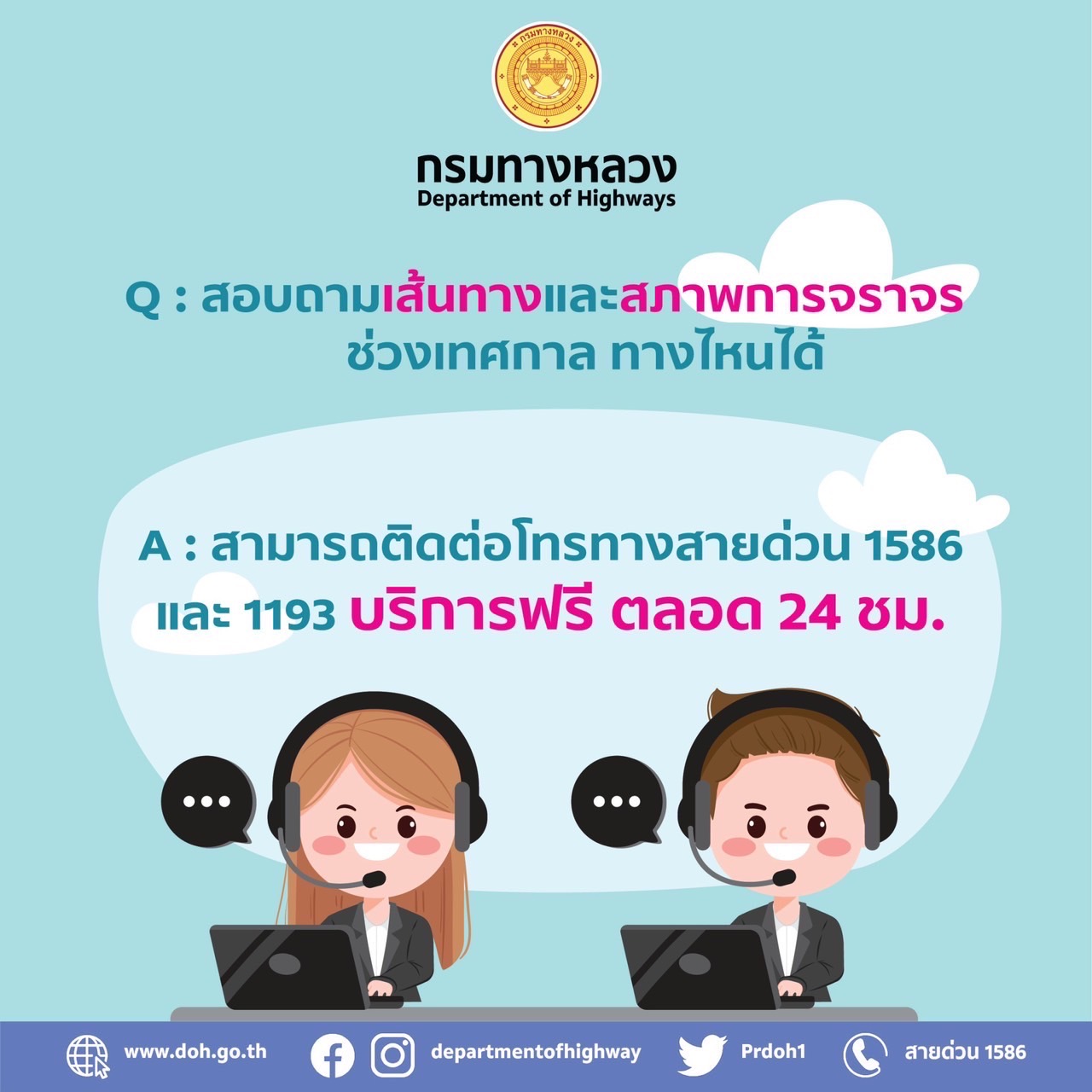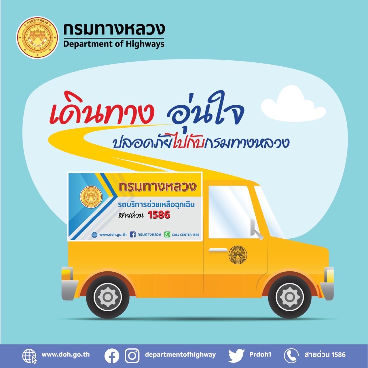 วิสัยทัศน์ : ระบบทางหลวงที่สะดวกปลอดภัย เชื่อมโยงการพัฒนาโครงสร้างพื้นฐานของประเทศ