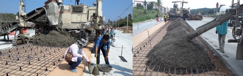 การก่อสร้างถนนคอนกรีตแบบไร้รอยต่อ (CRCP) สายแรกของกรมทางหลวง ทล.331บ.เนินผาสุข-มาบเอียง ตอน 1