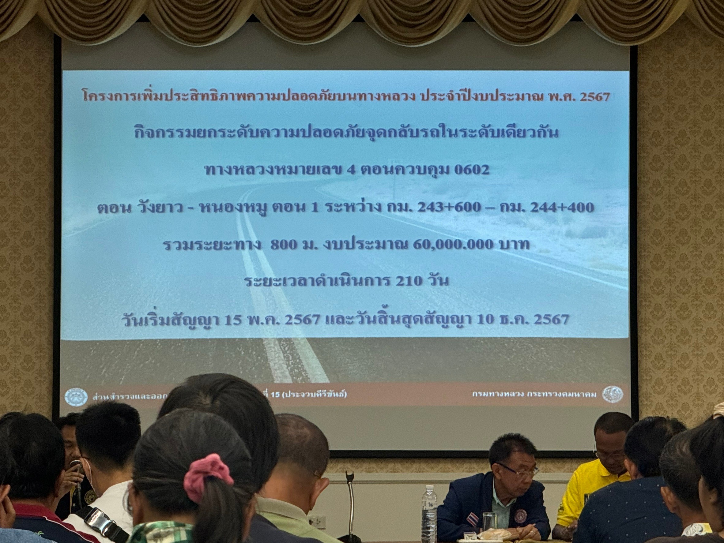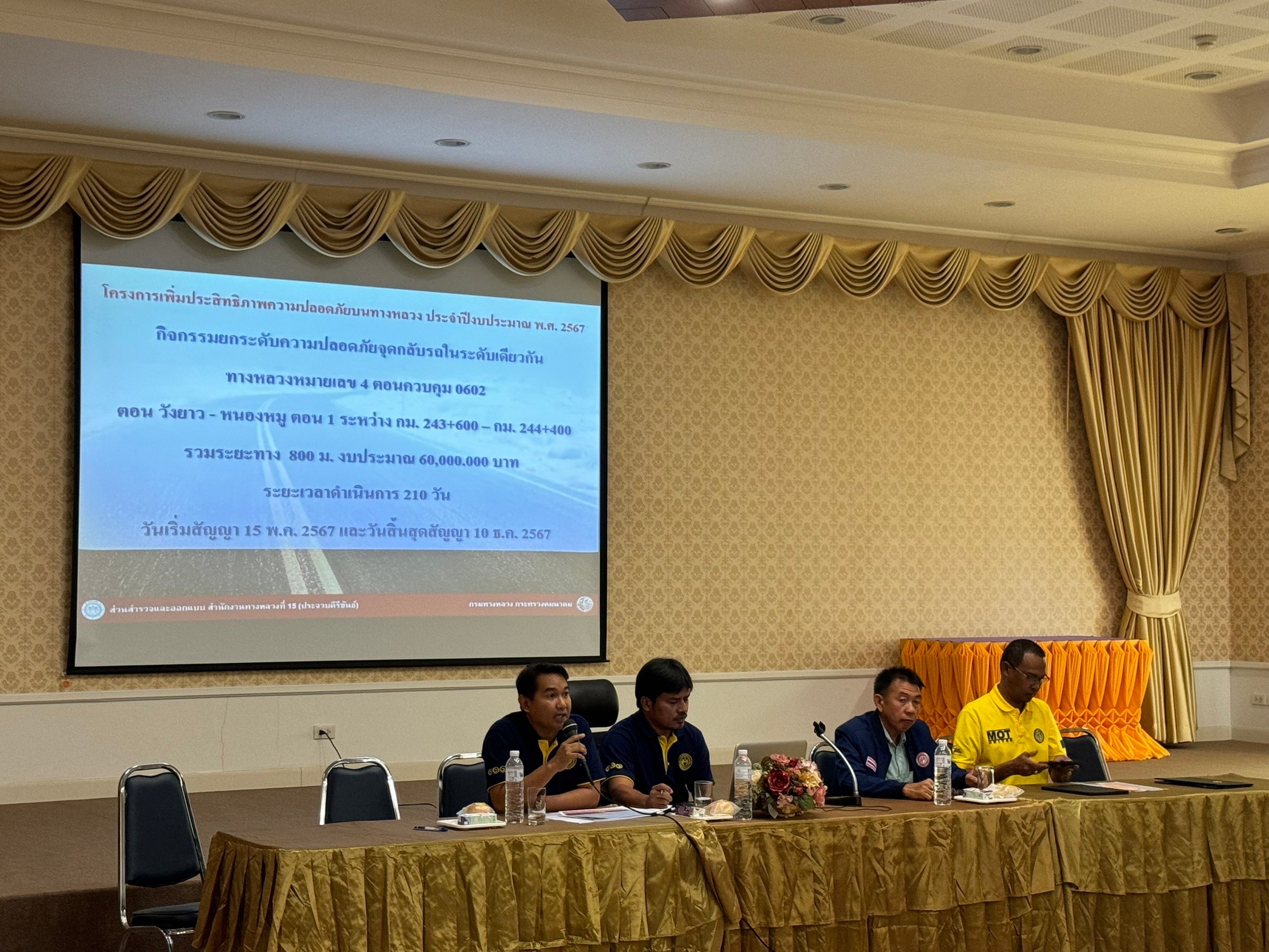 ได้ดำเนินการจัดประชุม การดำเนินงานการมีส่วนร่วมของประชาชน เพื่อประชาสัมพันธ์กิจกรรมยกระดับความปลอดภัยจุดกลับรถในระดับเดียวกัน ทางหลวงหมายเลข 4 ตอน วังยาว – หนองหมู