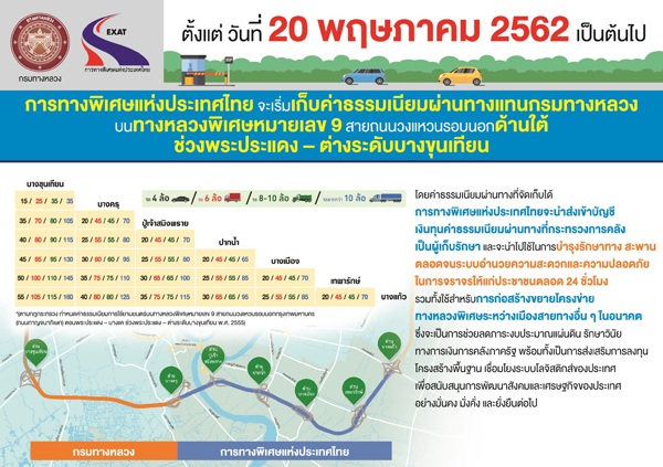 20 พ.ค. 62 เริ่มเก็บค่าธรรมเนียมผ่านทางวงแหวนด้านใต้ ช่วงพระประแดง - ต่างระดับบางขุนเทียน